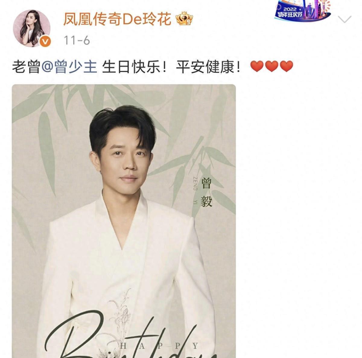 11月6日到来,那一天,是曾毅的生日,也是玲花官宣个人重磅新工作的第二天。在所有人都在用放大镜观察她,猜测她会如何“套现离场”的时候,她公开发布了一条简短的生日祝福。